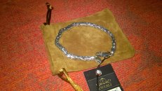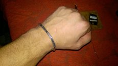 Full-fledged silver bracelet on hand.
