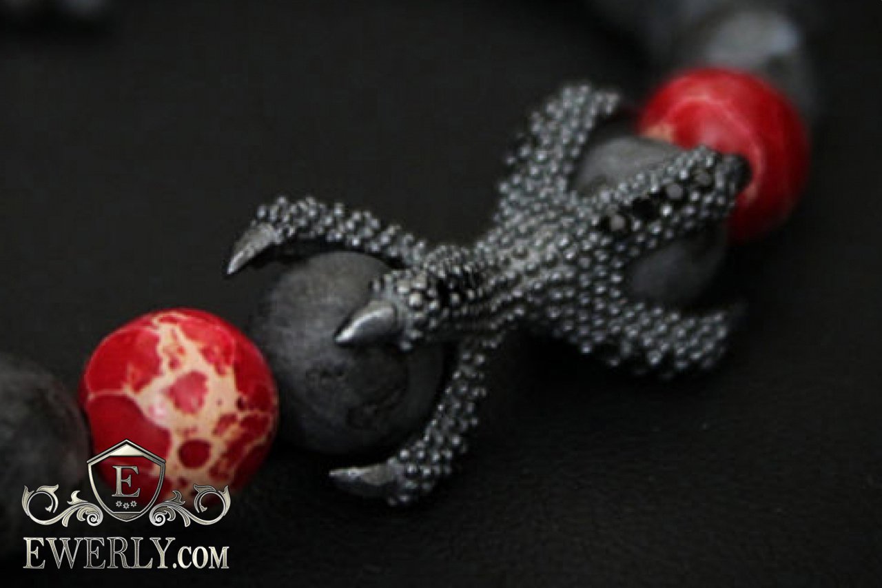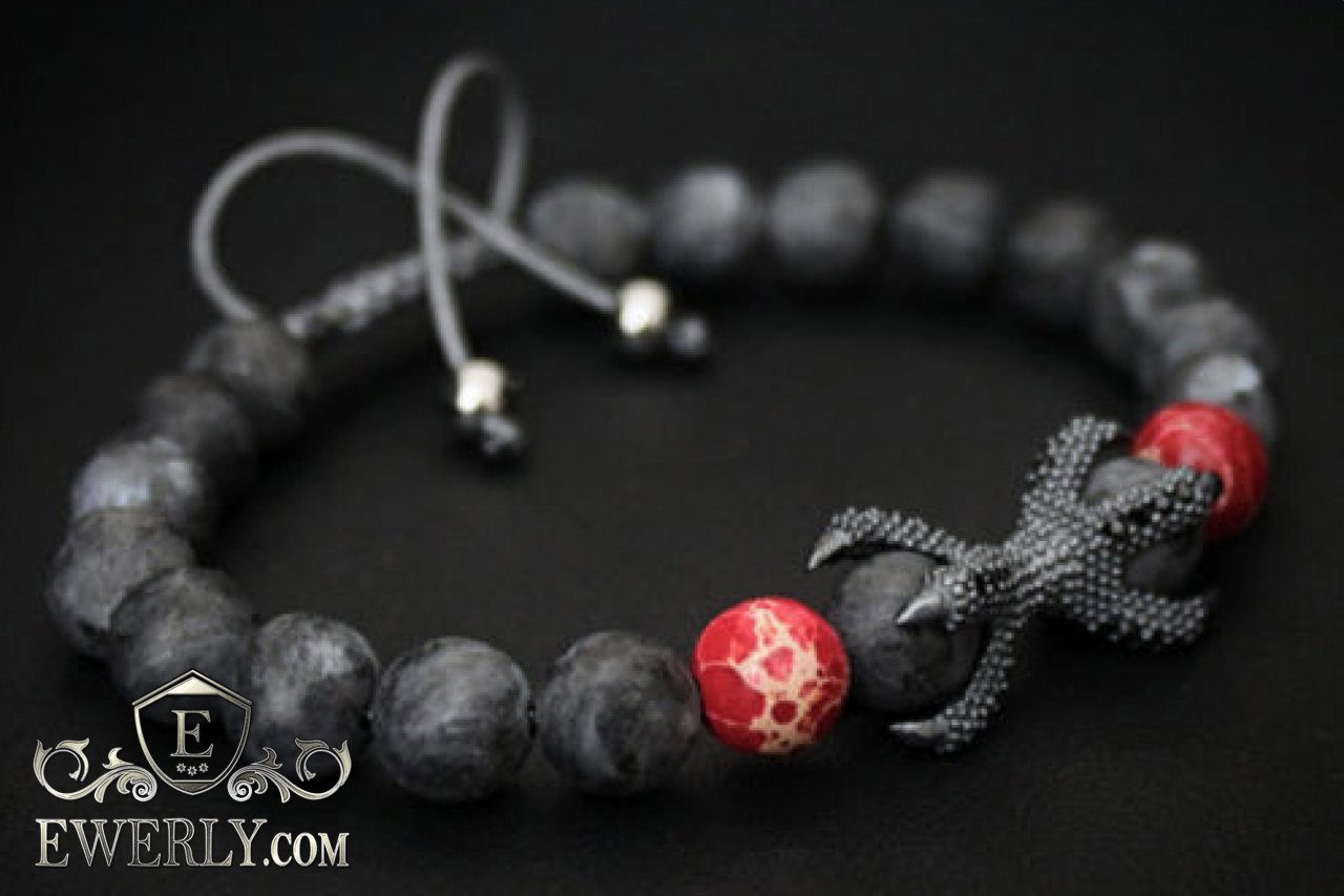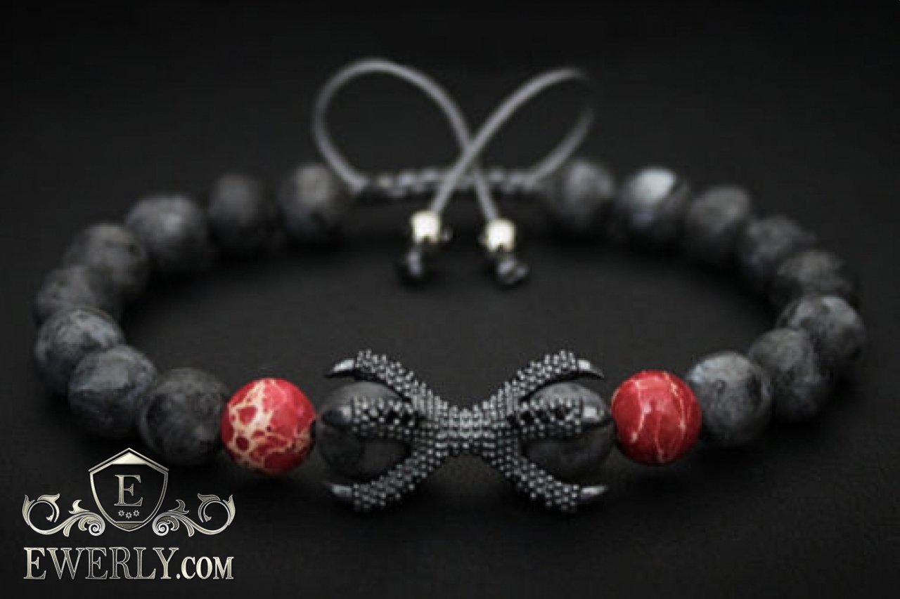 Каменный браслет чёрный с красным для мужчины 123032KQ